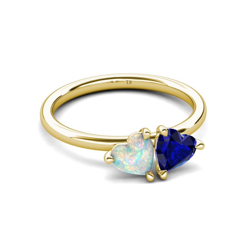 1.35 ctw Heart Shape (6.00 mm) Opal & Lab Created Blue Sapphire with Tiger Claw Prong setting Two Stone Duo Women Engagement Ring in 14K Yellow Gold More Details ...
