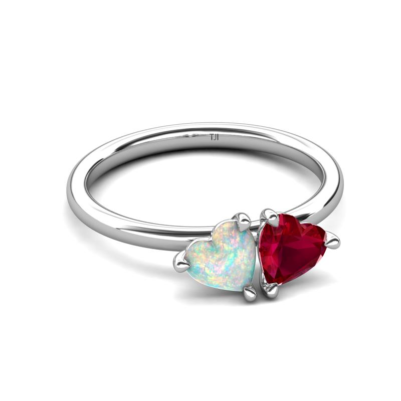 1.25 ctw Heart Shape (6.00 mm) Opal & Lab Created Ruby with Tiger Claw Prong setting Two Stone Duo Women Engagement Ring in 10K White Gold More Details ...