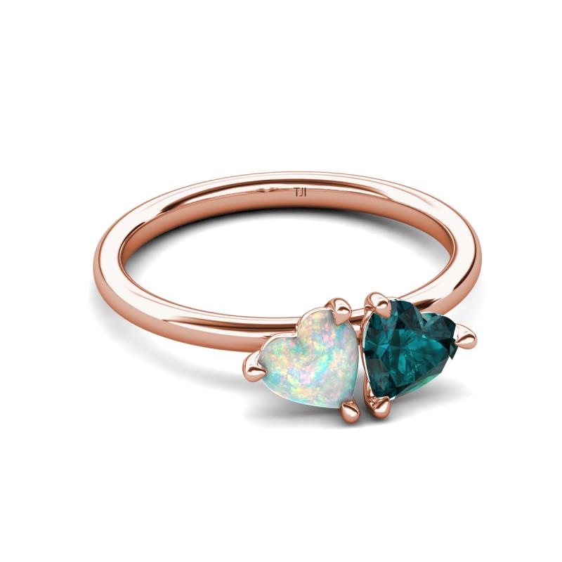 1.45 ctw Heart Shape (6.00 mm) Opal & London Blue Topaz with Tiger Claw Prong setting Two Stone Duo Women Engagement Ring in 18K Rose Gold More Details ...