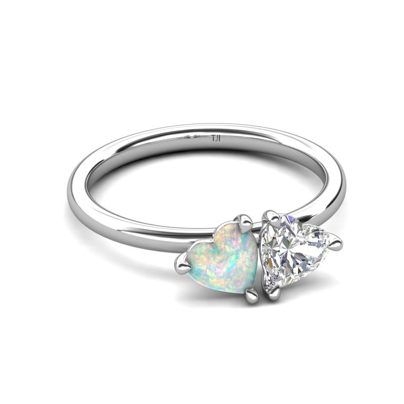 1.15 ctw Heart Shape (6.00 mm) Opal & Moissanite with Tiger Claw Prong setting Two Stone Duo Women Engagement Ring in Platinum More Details ...
