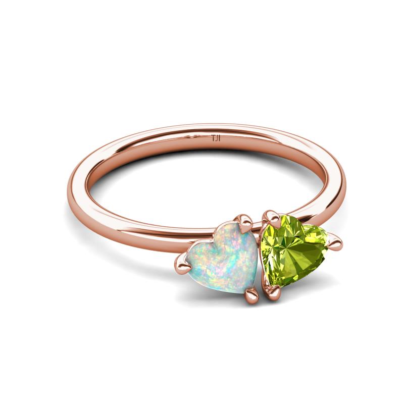 1.40 ctw Heart Shape (6.00 mm) Opal & Peridot with Tiger Claw Prong setting Two Stone Duo Women Engagement Ring in 10K Rose Gold More Details ...