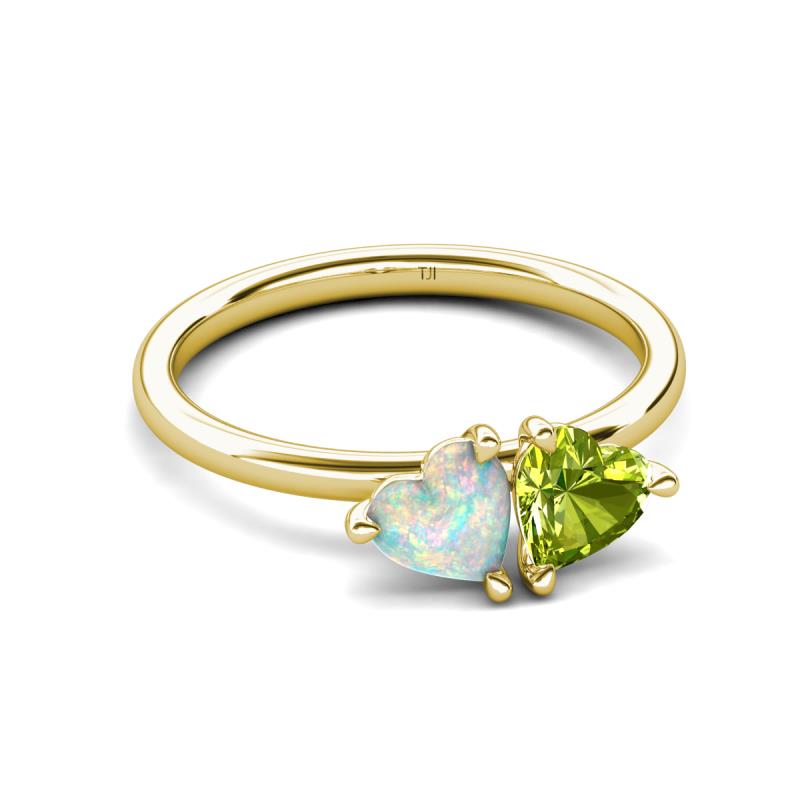 1.40 ctw Heart Shape (6.00 mm) Opal & Peridot with Tiger Claw Prong setting Two Stone Duo Women Engagement Ring in 10K Yellow Gold More Details ...