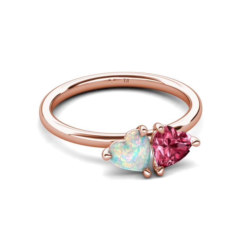1.25 ctw Heart Shape (6.00 mm) Opal & Pink Tourmaline with Tiger Claw Prong setting Two Stone Duo Women Engagement Ring in 18K Rose Gold More Details ...