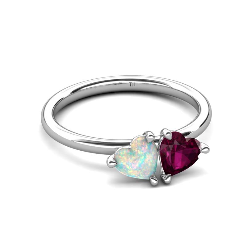 1.55 ctw Heart Shape (6.00 mm) Opal & Rhodolite Garnet with Tiger Claw Prong setting Two Stone Duo Women Engagement Ring in Platinum More Details ...