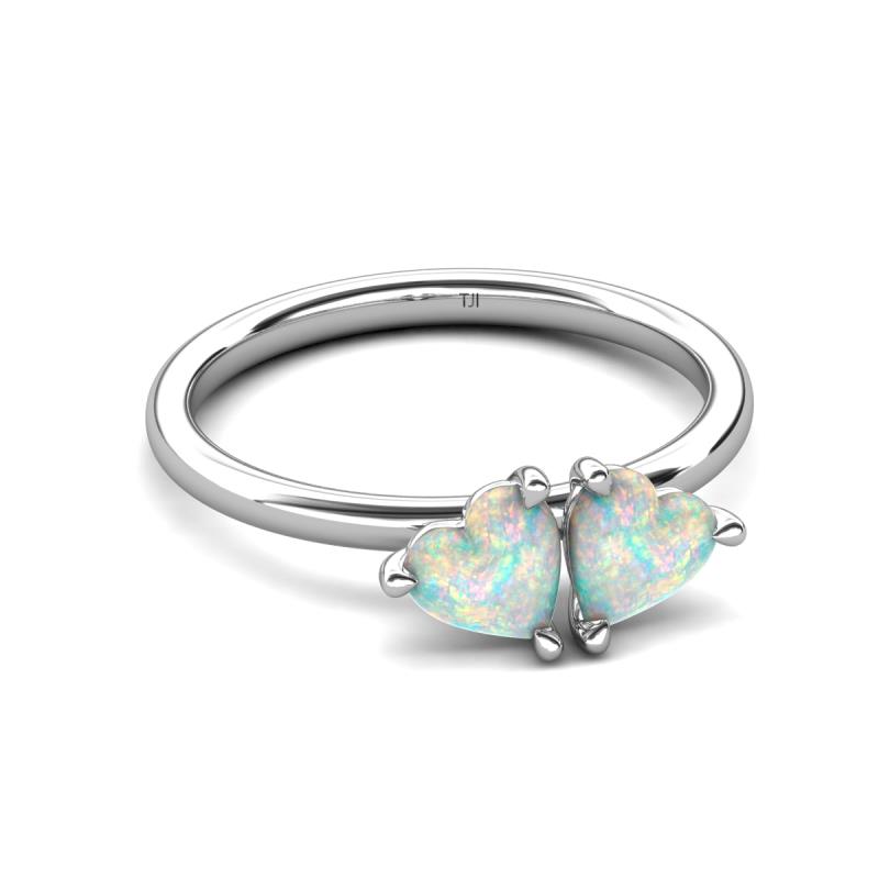 0.90 ctw Heart Shape (6.00 mm) Opal with Tiger Claw Prong setting Two Stone Duo Women Engagement Ring in 14K White Gold More Details ...