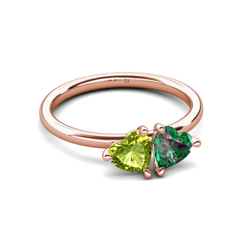 1.70 ctw Heart Shape (6.00 mm) Peridot & Lab Created Alexandrite with Tiger Claw Prong setting Two Stone Duo Women Engagement Ring in 10K Rose Gold More Details ...