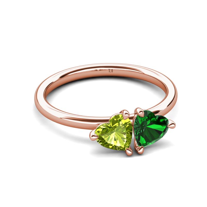 1.70 ctw Heart Shape (6.00 mm) Peridot & Lab Created Emerald with Tiger Claw Prong setting Two Stone Duo Women Engagement Ring in 18K Rose Gold More Details ...