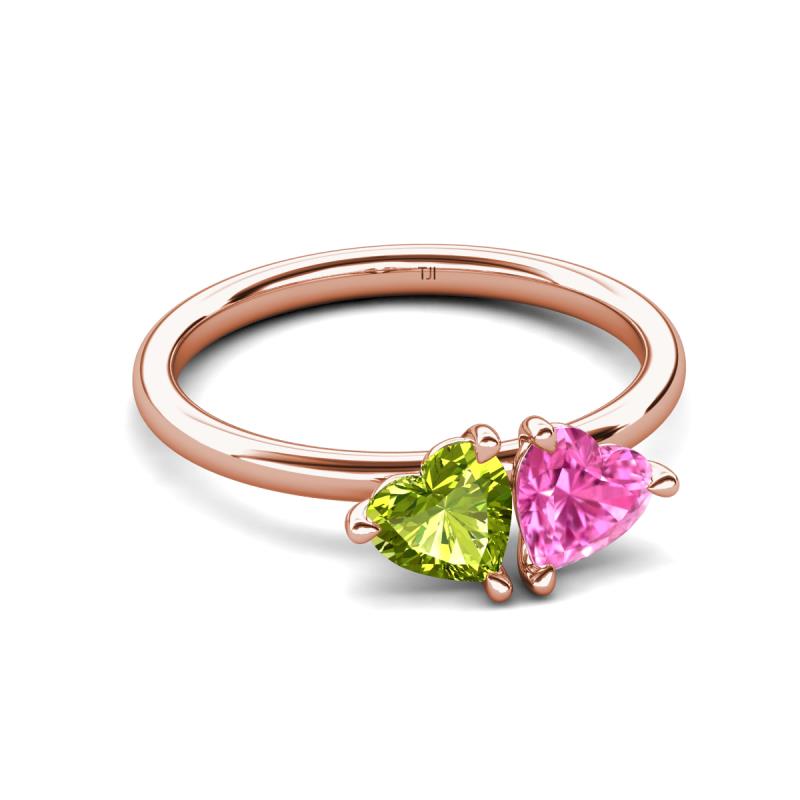 1.85 ctw Heart Shape (6.00 mm) Peridot & Lab Created Pink Sapphire with Tiger Claw Prong setting Two Stone Duo Women Engagement Ring in 14K Rose Gold More Details ...