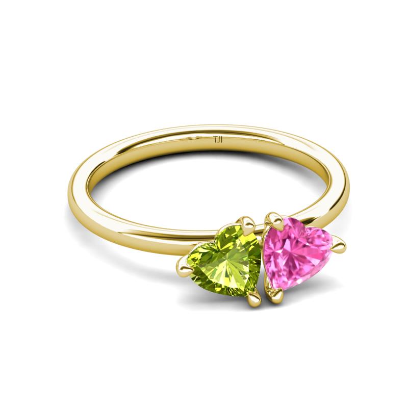 1.85 ctw Heart Shape (6.00 mm) Peridot & Lab Created Pink Sapphire with Tiger Claw Prong setting Two Stone Duo Women Engagement Ring in 18K Yellow Gold More Details ...
