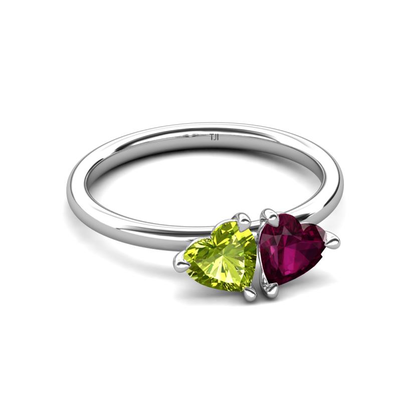 2.05 ctw Heart Shape (6.00 mm) Peridot & Rhodolite Garnet with Tiger Claw Prong setting Two Stone Duo Women Engagement Ring in 18K White Gold More Details ...