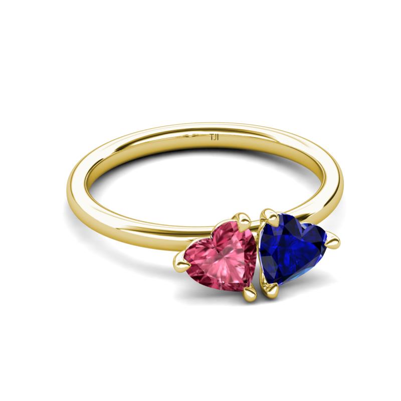 1.70 ctw Heart Shape (6.00 mm) Pink Tourmaline & Lab Created Blue Sapphire in Tiger Claw Prong setting Two Stone Duo Women Engagement Ring in 18K Yellow Gold More Details ...