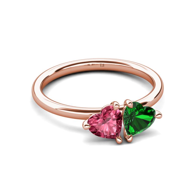 1.55 ctw Heart Shape (6.00 mm) Pink Tourmaline & Lab Created Emerald in Tiger Claw Prong setting Two Stone Duo Women Engagement Ring in 18K Rose Gold More Details ...