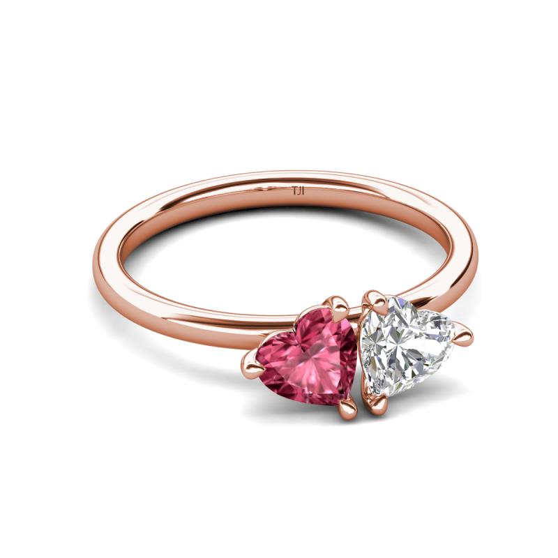1.70 ctw Heart Shape (6.00 mm) Pink Tourmaline & Lab Created White Sapphire in Tiger Claw Prong setting Two Stone Duo Women Engagement Ring in 18K Rose Gold More Details ...