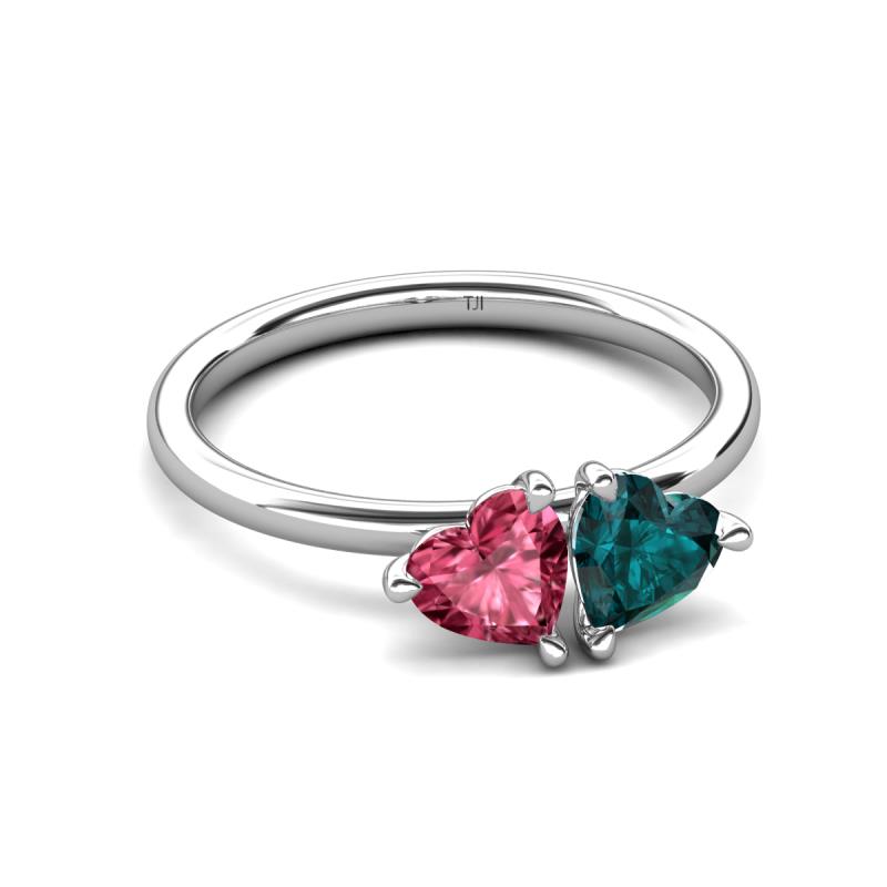 1.80 ctw Heart Shape (6.00 mm) Pink Tourmaline & London Blue Topaz in Tiger Claw Prong setting Two Stone Duo Women Engagement Ring in 10K White Gold More Details ...