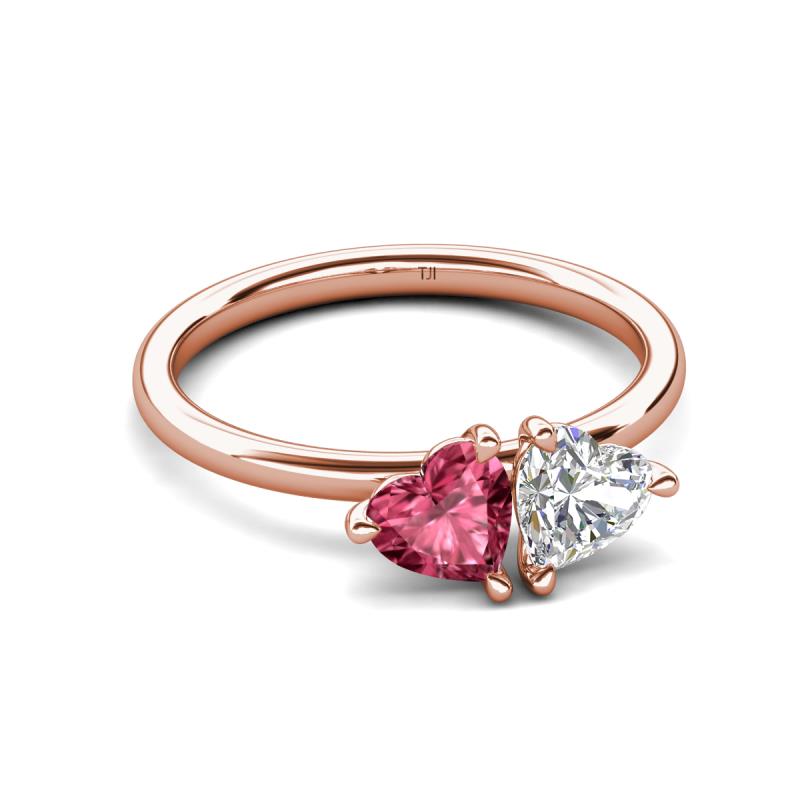 1.50 ctw Heart Shape (6.00 mm) Pink Tourmaline & Moissanite in Tiger Claw Prong setting Two Stone Duo Women Engagement Ring in 14K Rose Gold More Details ...