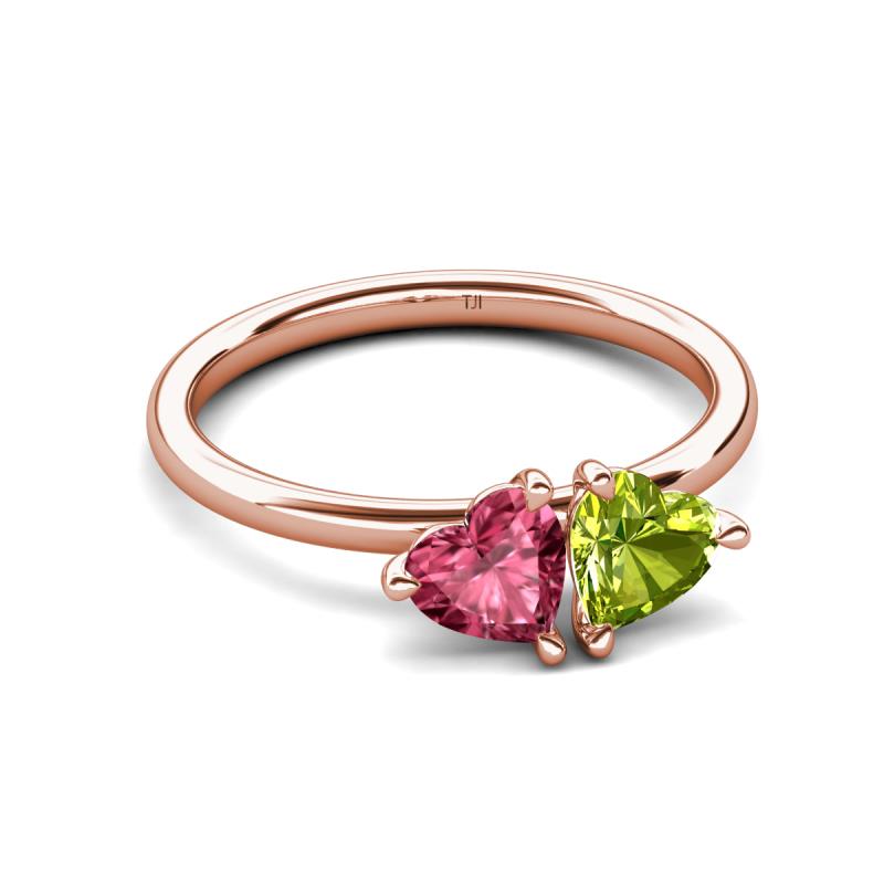 1.75 ctw Heart Shape (6.00 mm) Pink Tourmaline & Peridot in Tiger Claw Prong setting Two Stone Duo Women Engagement Ring in 14K Rose Gold More Details ...