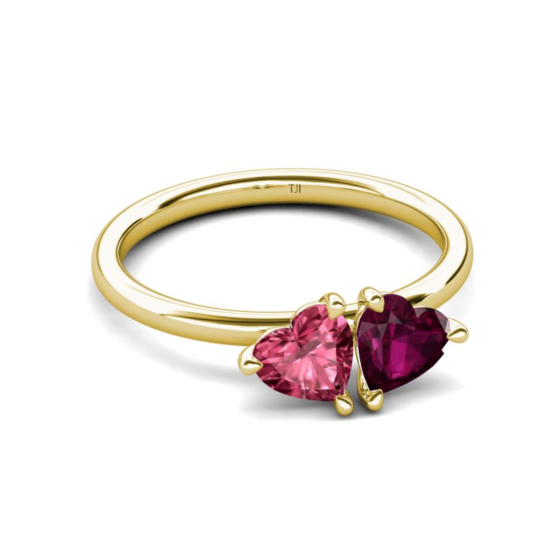 1.90 ctw Heart Shape (6.00 mm) Pink Tourmaline & Rhodolite Garnet in Tiger Claw Prong setting Two Stone Duo Women Engagement Ring in 10K Yellow Gold More Details ...