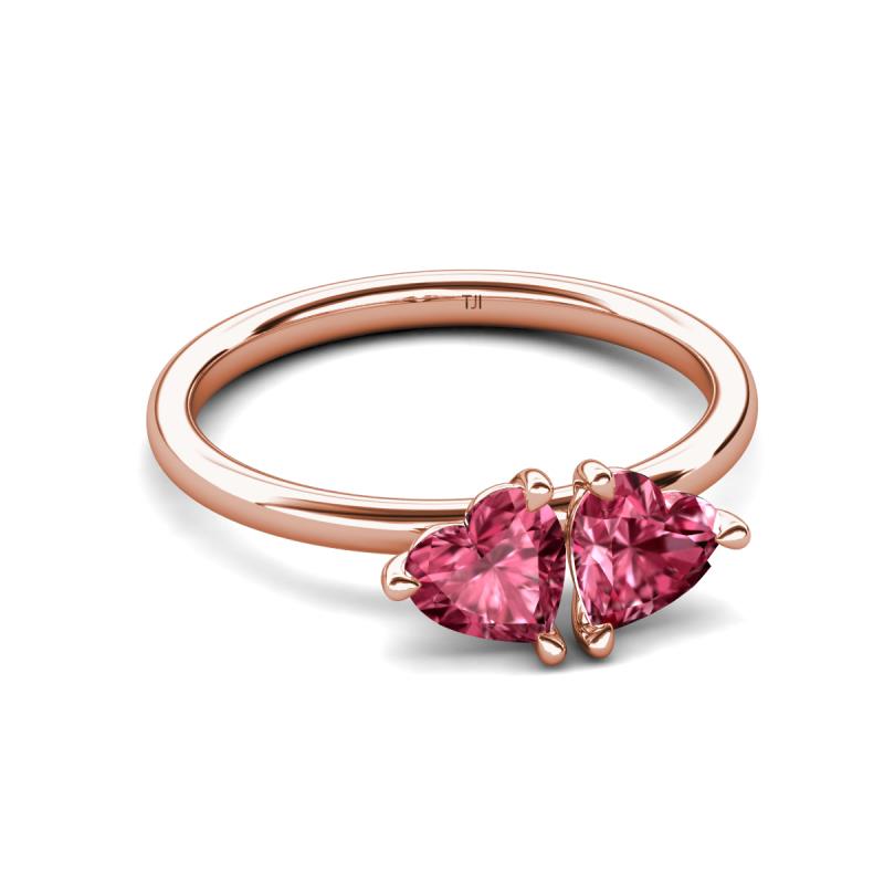 1.60 ctw Heart Shape (6.00 mm) Pink Tourmaline in Tiger Claw Prong setting Two Stone Duo Women Engagement Ring in 14K Rose Gold More Details ...