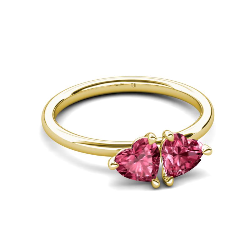1.60 ctw Heart Shape (6.00 mm) Pink Tourmaline in Tiger Claw Prong setting Two Stone Duo Women Engagement Ring in 18K Yellow Gold More Details ...