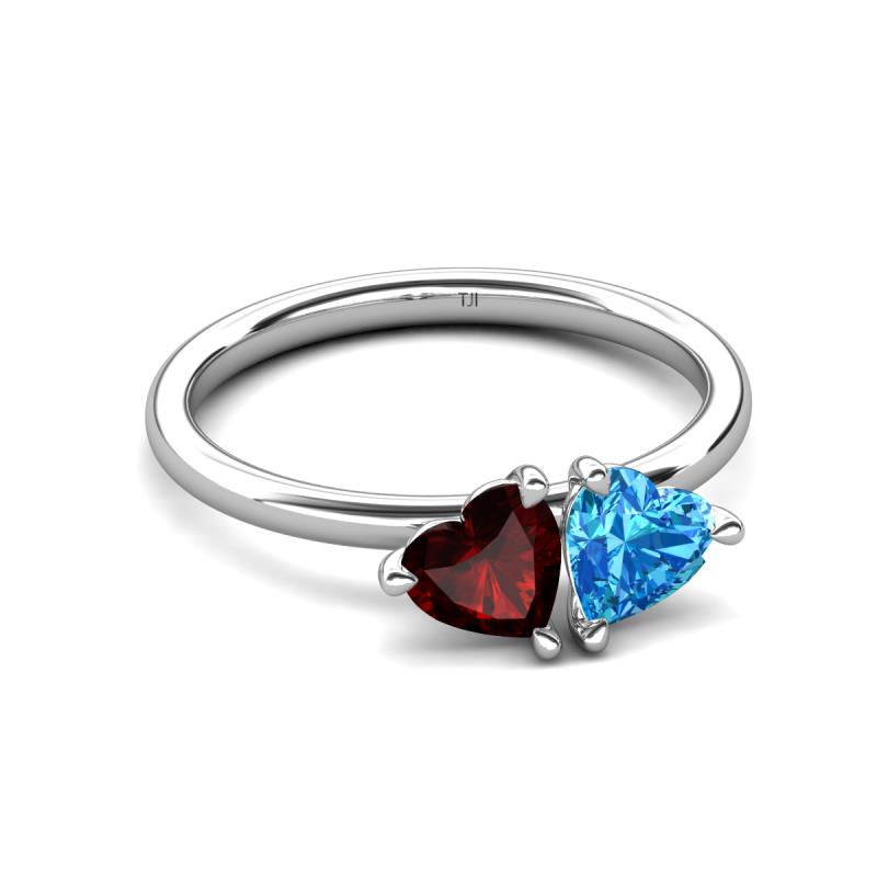 1.95 ctw Heart Shape (6.00 mm) Red Garnet & Blue Topaz with Tiger Claw Prong setting Two Stone Duo Women Engagement Ring in 10K White Gold More Details ...