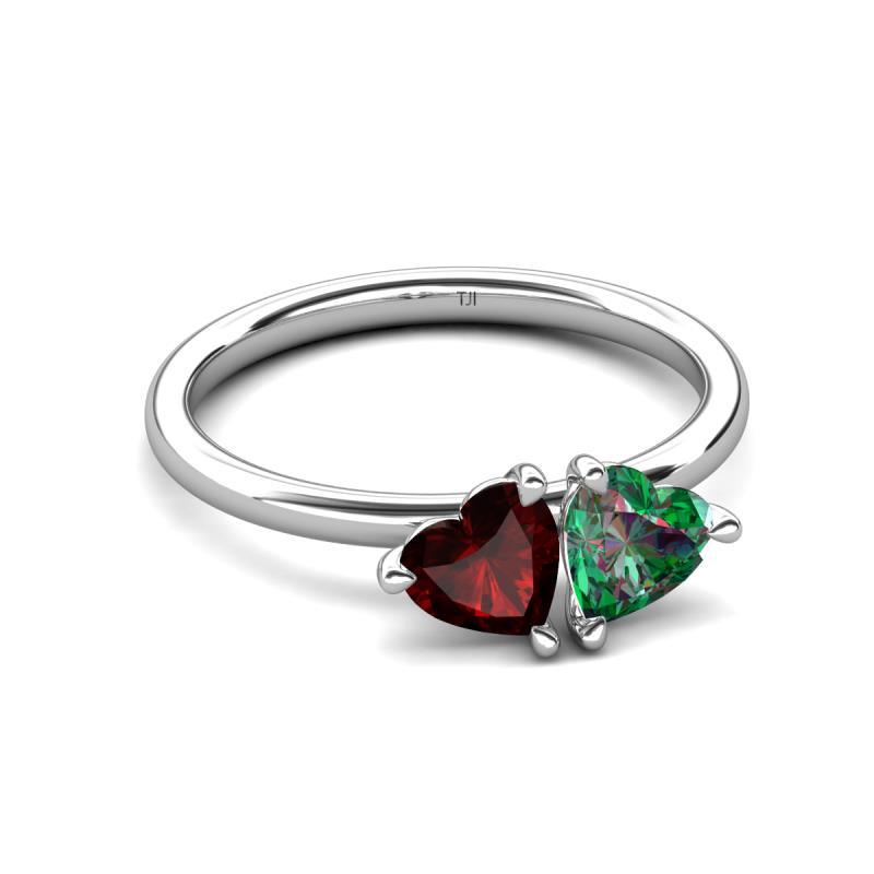 1.70 ctw Heart Shape (6.00 mm) Red Garnet & Lab Created Alexandrite with Tiger Claw Prong setting Two Stone Duo Women Engagement Ring in 14K White Gold More Details ...