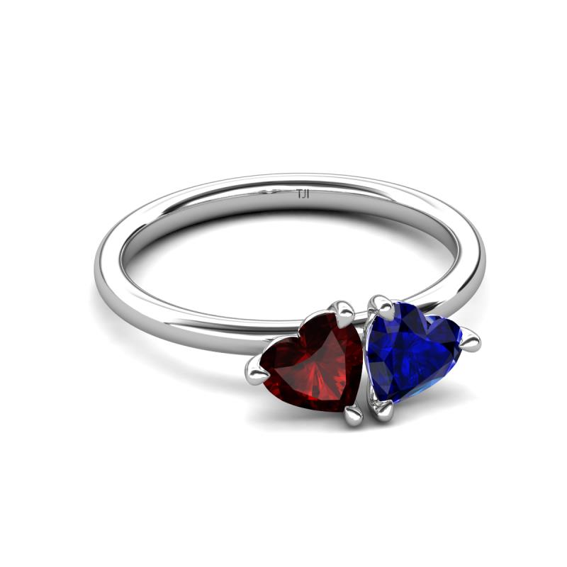 1.85 ctw Heart Shape (6.00 mm) Red Garnet & Lab Created Blue Sapphire with Tiger Claw Prong setting Two Stone Duo Women Engagement Ring in 10K White Gold More Details ...