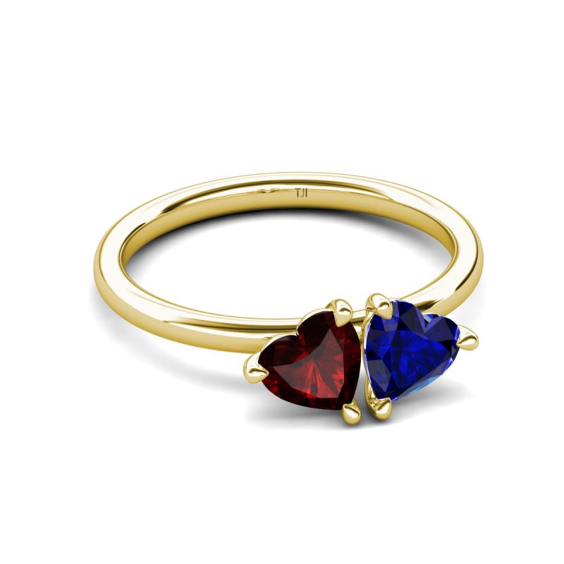 1.85 ctw Heart Shape (6.00 mm) Red Garnet & Lab Created Blue Sapphire with Tiger Claw Prong setting Two Stone Duo Women Engagement Ring in 14K Yellow Gold More Details ...