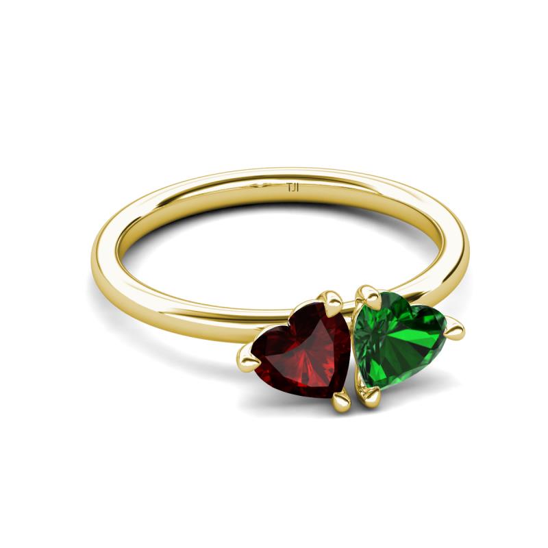 1.70 ctw Heart Shape (6.00 mm) Red Garnet & Lab Created Emerald with Tiger Claw Prong setting Two Stone Duo Women Engagement Ring in 14K Yellow Gold More Details ...