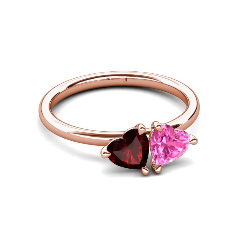 1.85 ctw Heart Shape (6.00 mm) Red Garnet & Lab Created Pink Sapphire with Tiger Claw Prong setting Two Stone Duo Women Engagement Ring in 10K Rose Gold More Details ...