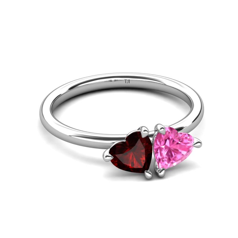 1.85 ctw Heart Shape (6.00 mm) Red Garnet & Lab Created Pink Sapphire with Tiger Claw Prong setting Two Stone Duo Women Engagement Ring in 18K White Gold More Details ...