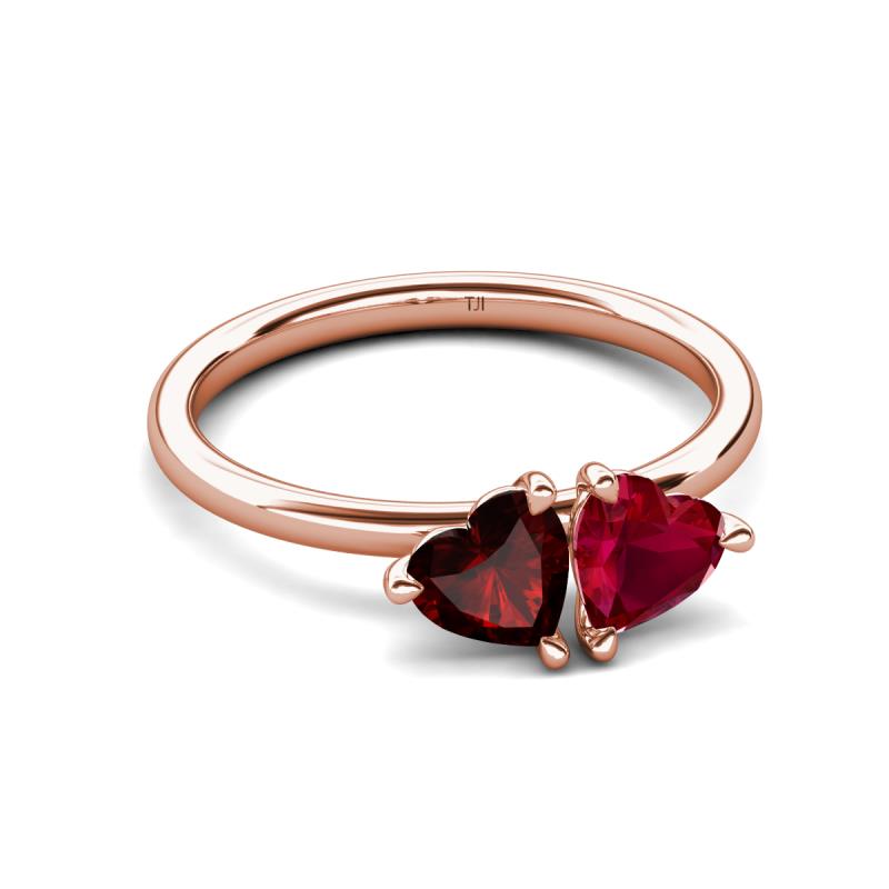 1.75 ctw Heart Shape (6.00 mm) Red Garnet & Lab Created Ruby with Tiger Claw Prong setting Two Stone Duo Women Engagement Ring in 10K Rose Gold More Details ...