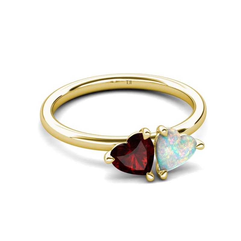 1.40 ctw Heart Shape (6.00 mm) Red Garnet & Opal with Tiger Claw Prong setting Two Stone Duo Women Engagement Ring in 14K Yellow Gold More Details ...