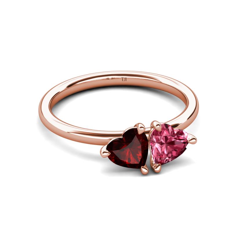 1.75 ctw Heart Shape (6.00 mm) Red Garnet & Pink Tourmaline with Tiger Claw Prong setting Two Stone Duo Women Engagement Ring in 18K Rose Gold More Details ...