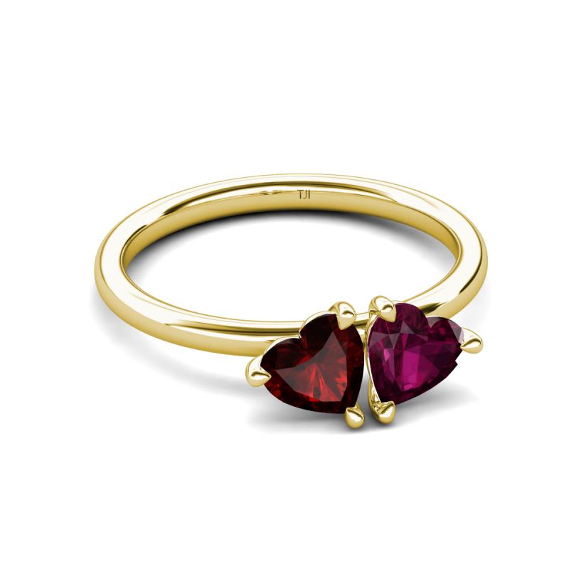 2.05 ctw Heart Shape (6.00 mm) Red Garnet & Rhodolite Garnet with Tiger Claw Prong setting Two Stone Duo Women Engagement Ring in 10K Yellow Gold More Details ...