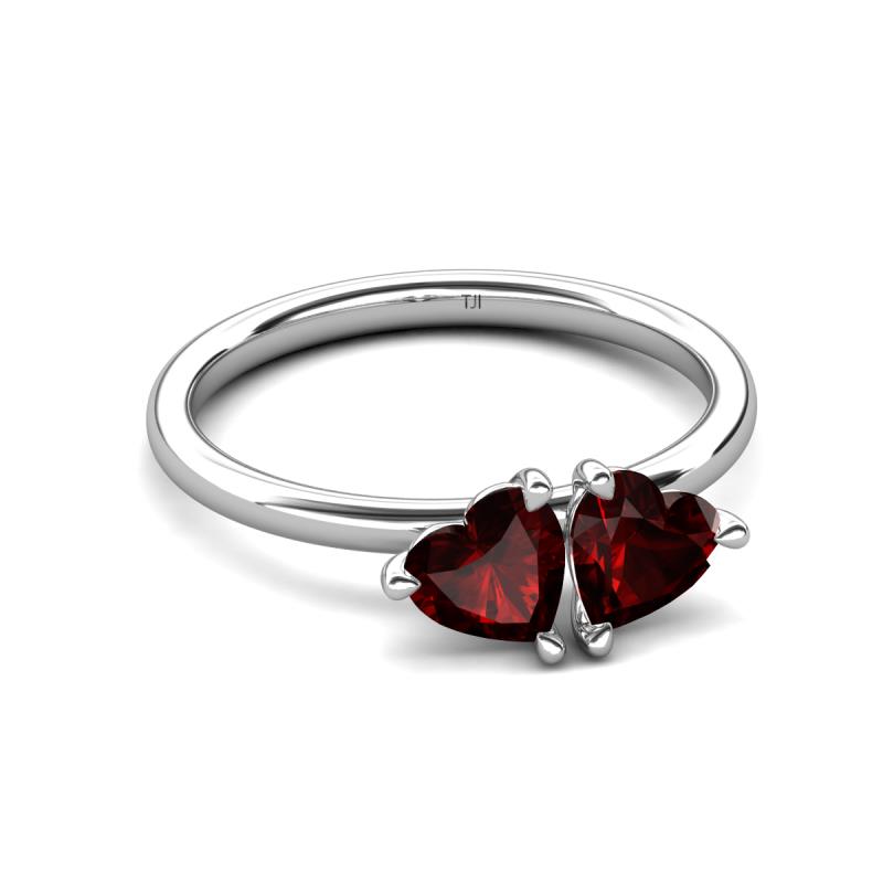 Celebrate your love with this stunning ring of 1.90 ctw features two heart-shaped Red Garnet nestled together in a "toi et moi" design & the unique tiger claw prong setting adds a touch of edginess and modernity to the classic design symbolizing the unity and connection between two people in love & a perfect choice for the fashion-forward bride.