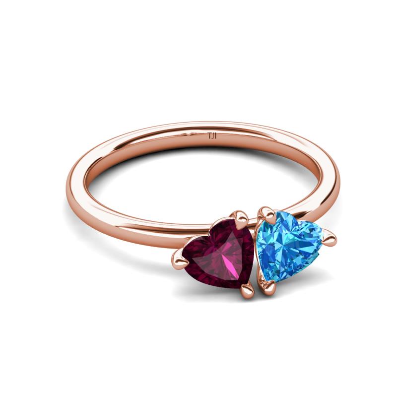 2.10 ctw Heart Shape (6.00 mm) Rhodolite Garnet & Blue Topaz with Tiger Claw Prong setting Two Stone Duo Women Engagement Ring in 18K Rose Gold More Details ...