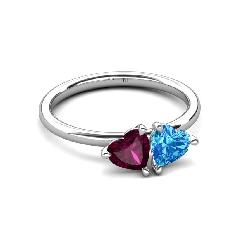 2.10 ctw Heart Shape (6.00 mm) Rhodolite Garnet & Blue Topaz with Tiger Claw Prong setting Two Stone Duo Women Engagement Ring in Platinum More Details ...