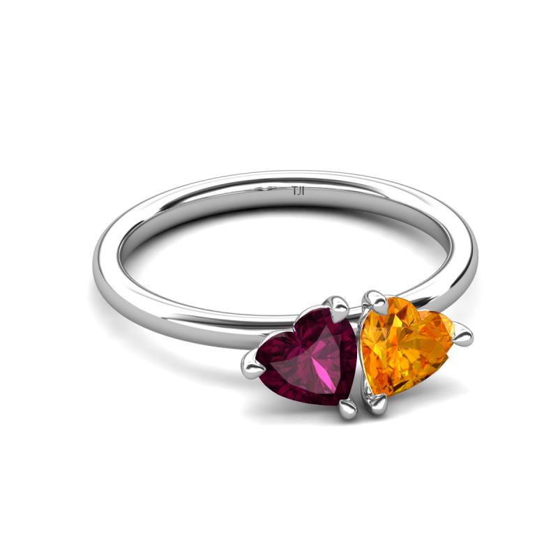 1.78 ctw Heart Shape (6.00 mm) Rhodolite Garnet & Citrine with Tiger Claw Prong setting Two Stone Duo Women Engagement Ring in 14K White Gold More Details ...