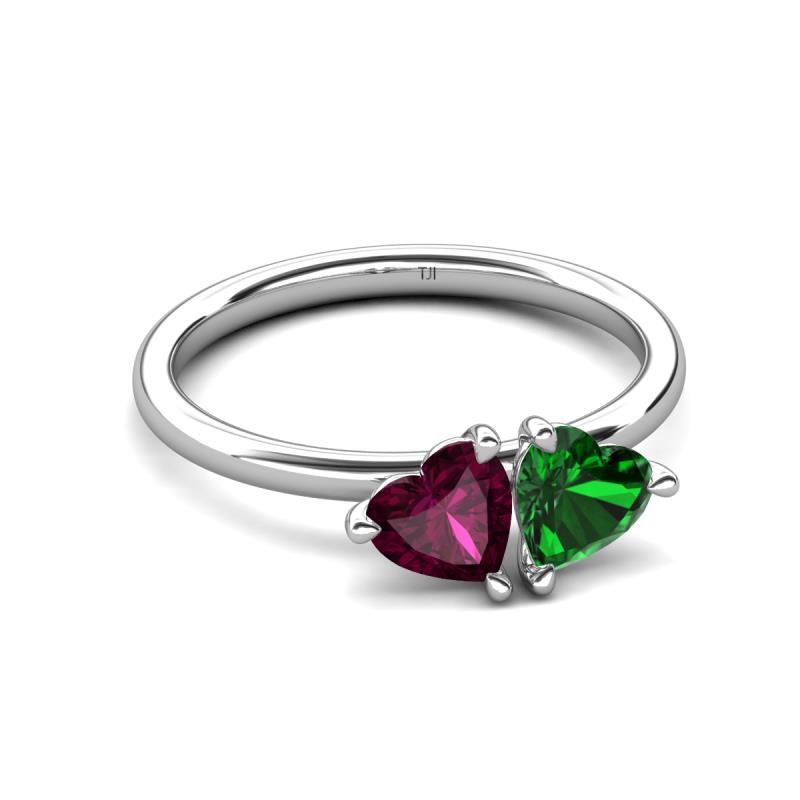 1.85 ctw Heart Shape (6.00 mm) Rhodolite Garnet & Lab Created Emerald with Tiger Claw Prong setting Two Stone Duo Women Engagement Ring in Platinum More Details ...