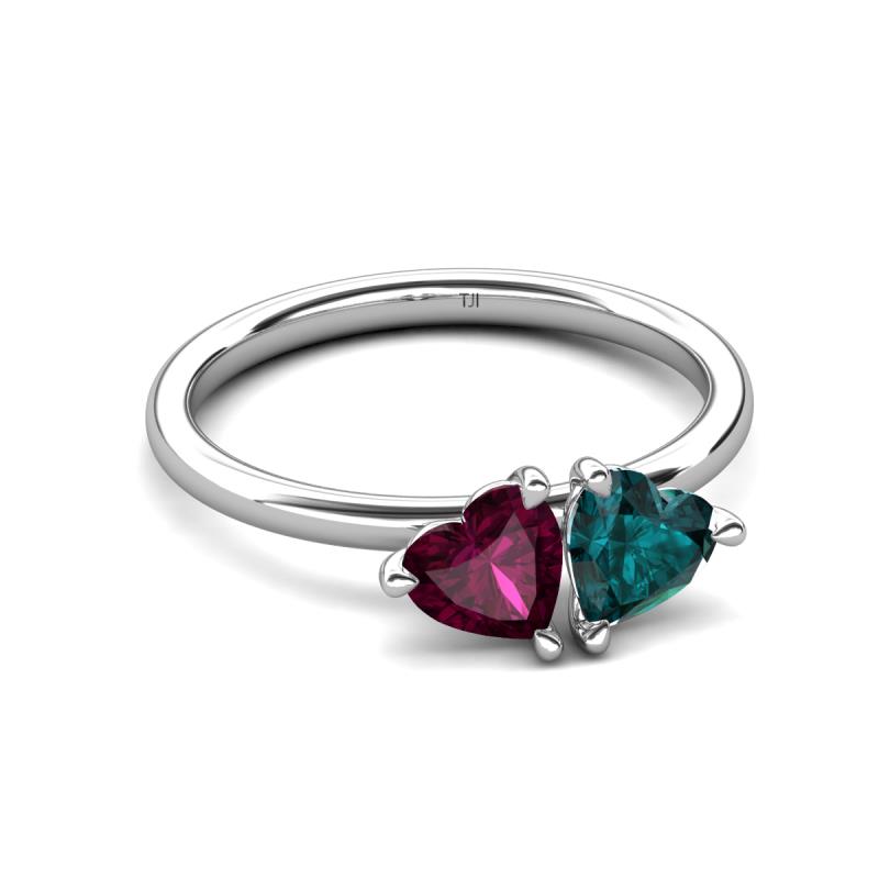 2.10 ctw Heart Shape (6.00 mm) Rhodolite Garnet & London Blue Topaz with Tiger Claw Prong setting Two Stone Duo Women Engagement Ring in 18K White Gold More Details ...