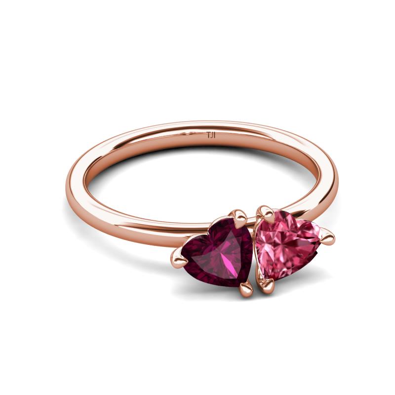 1.90 ctw Heart Shape (6.00 mm) Rhodolite Garnet & Pink Tourmaline with Tiger Claw Prong setting Two Stone Duo Women Engagement Ring in 10K Rose Gold More Details ...