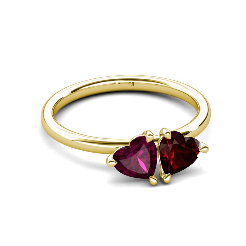 2.05 ctw Heart Shape (6.00 mm) Rhodolite Garnet & Red Garnet with Tiger Claw Prong setting Two Stone Duo Women Engagement Ring in 18K Yellow Gold More Details ...