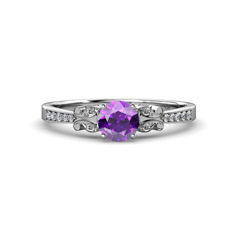 Amethyst and Diamond 1.01 ctw Butterfly Womens Engagement Ring with Milgrain Work 14K White Gold More Details ...