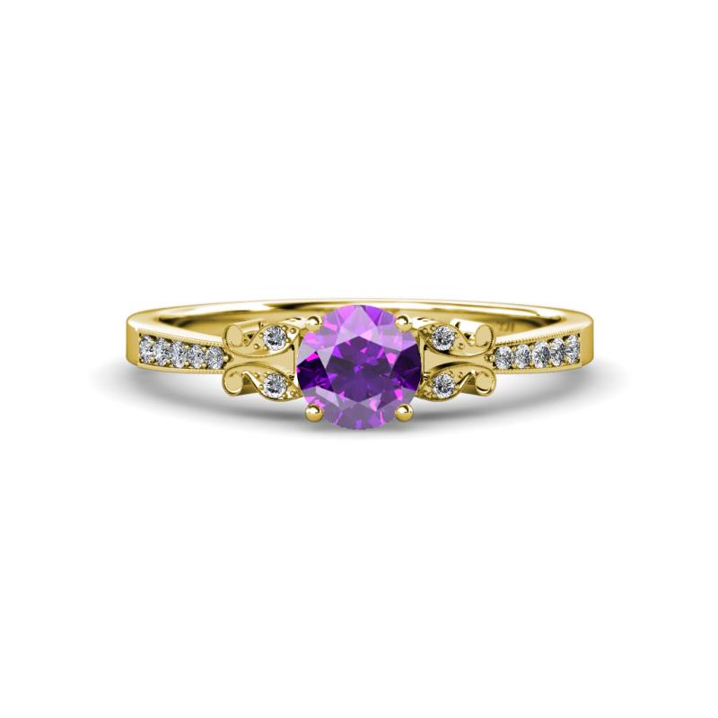 Amethyst and Diamond 1.01 ctw Butterfly Womens Engagement Ring with Milgrain Work 18K Yellow Gold More Details ...