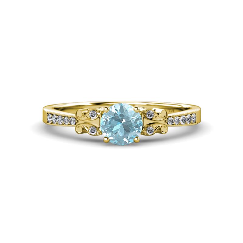 Aquamarine and Diamond 1.01 ctw Butterfly Womens Engagement Ring with Milgrain Work 14K Yellow Gold More Details ...
