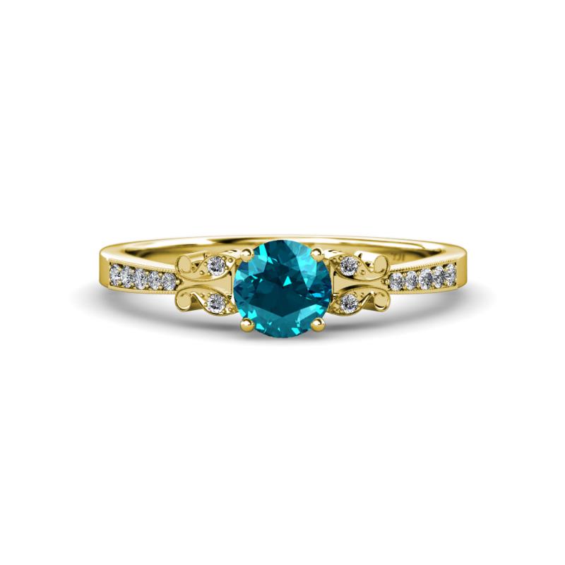 London Blue Topaz and Diamond 1.09 ctw Butterfly Womens Engagement Ring with Milgrain Work 18K Yellow Gold More Details ...