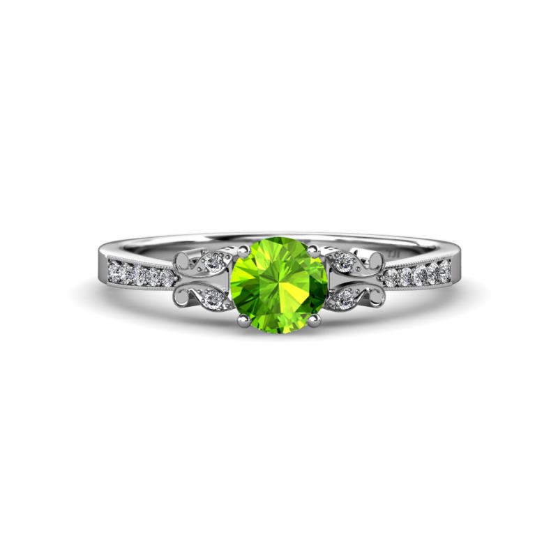 Peridot and Diamond 1.24 ctw Butterfly Womens Engagement Ring with Milgrain Work 14K White Gold More Details ...