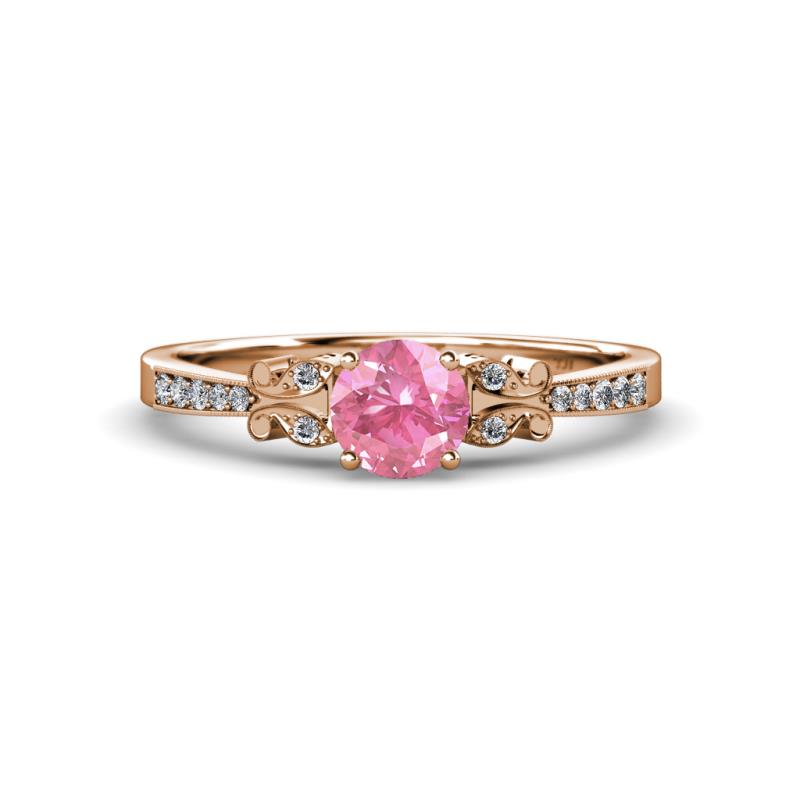 Pink Tourmaline and Diamond 1.01 ctw Butterfly Womens Engagement Ring with Milgrain Work 14K Rose Gold More Details ...