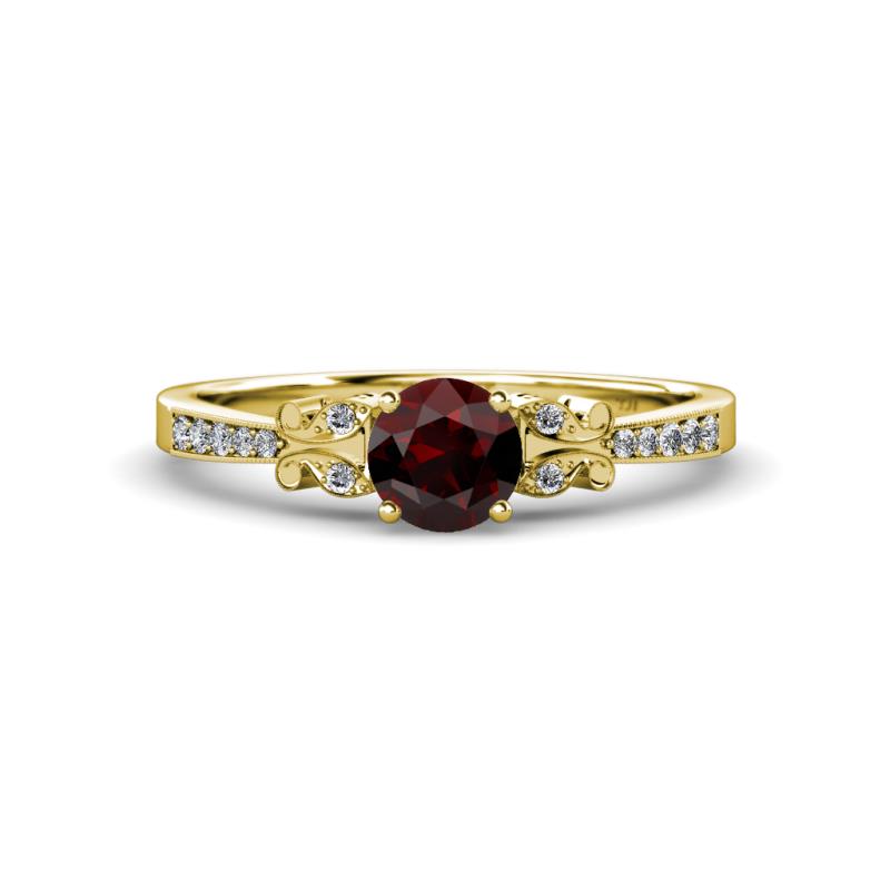 Red Garnet and Diamond 1.19 ctw Butterfly Womens Engagement Ring with Milgrain Work 18K Yellow Gold More Details ...