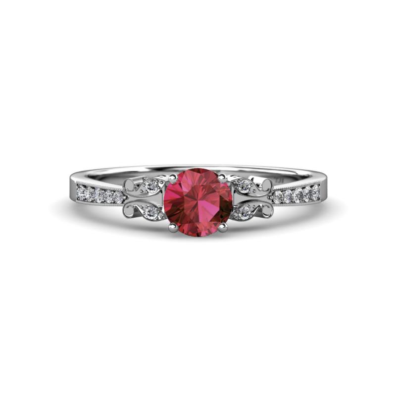 Rhodolite Garnet and Diamond 1.14 ctw Butterfly Womens Engagement Ring with Milgrain Work 14K White Gold More Details ...
